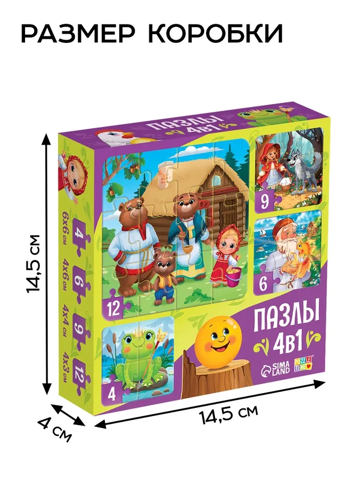 Набор пазлов «Сказочный мир» — это увлекательное путешествие в мир русских народных сказок для детей от 3 лет. В комплекте четыре ярких пазла, каждый из которых состоит из разного количества элементов. Собранные картинки квадратной формы станут отличным украшением детской комнаты или подарком для маленьких любителей головоломок.