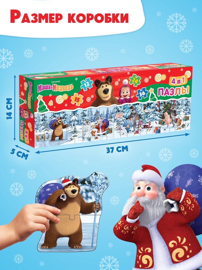 Пазлы новогодние «Маша и Медведь», набор 4в1: 12, 15, 24, 35 деталей — Характеристики