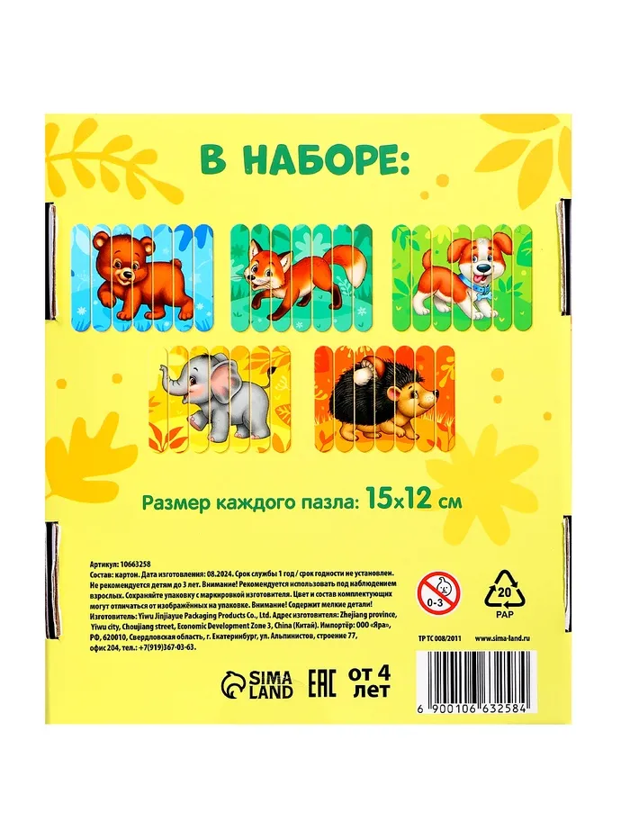 Пазлы палочки «Лесные животные» — отличный выбор для развития ребёнка и увлекательного времяпрепровождения. Набор состоит из 5 пазлов в виде палочек, что добавляет оригинальности в процесс сборки. Каждый пазл изображает яркие и узнаваемые образы животных, знакомя малыша с обитателями леса.