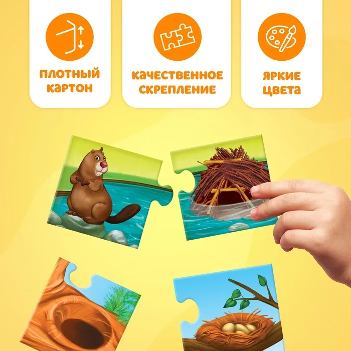 Собирая пазлы, ребенок развивает логическое мышление, внимание и мелкую моторику. Игра помогает узнать больше о животных и их домах, расширяя кругозор. Яркие картинки стимулируют зрительное восприятие, а процесс сборки учит терпению и усидчивости. Это отличный способ провести время с пользой для всей семьи.