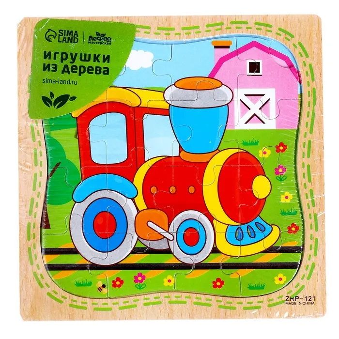 Пазлы «Паровоз» в рамке, 16 элементов, 15×15 см — Характеристики