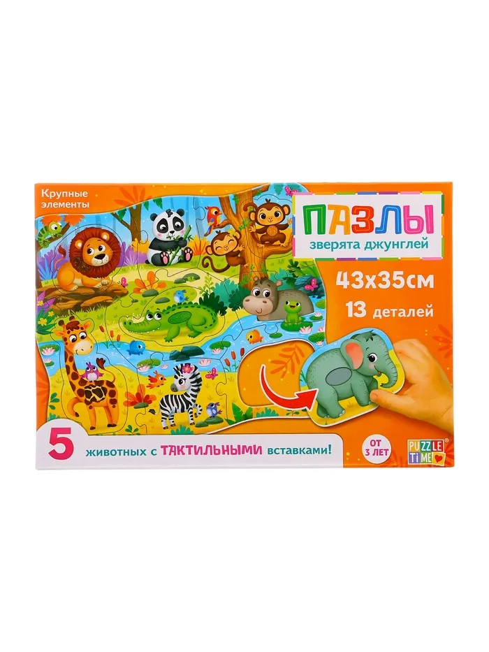 Пазлы с тактильными вставками «Зверята джунглей», 13 деталей — Характеристики