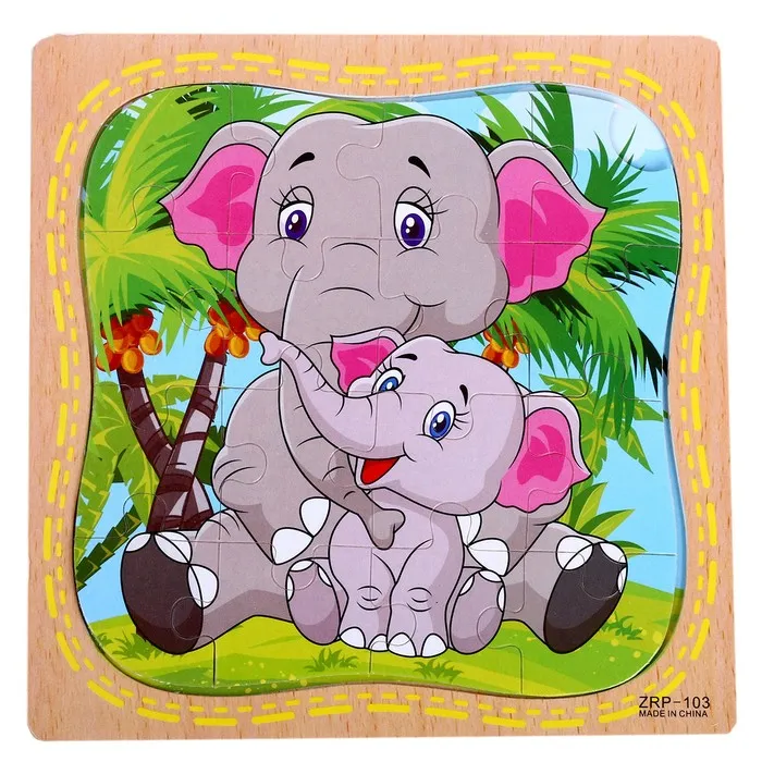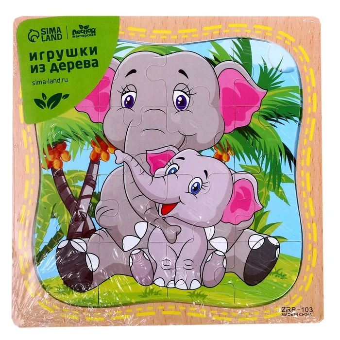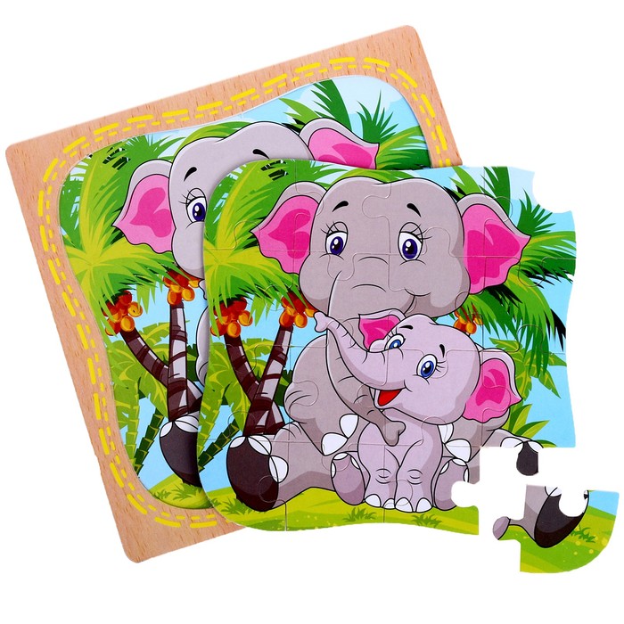 Пазлы «Слонёнок и мама», в рамке, 16 элементов, 15×15 см — Характеристики