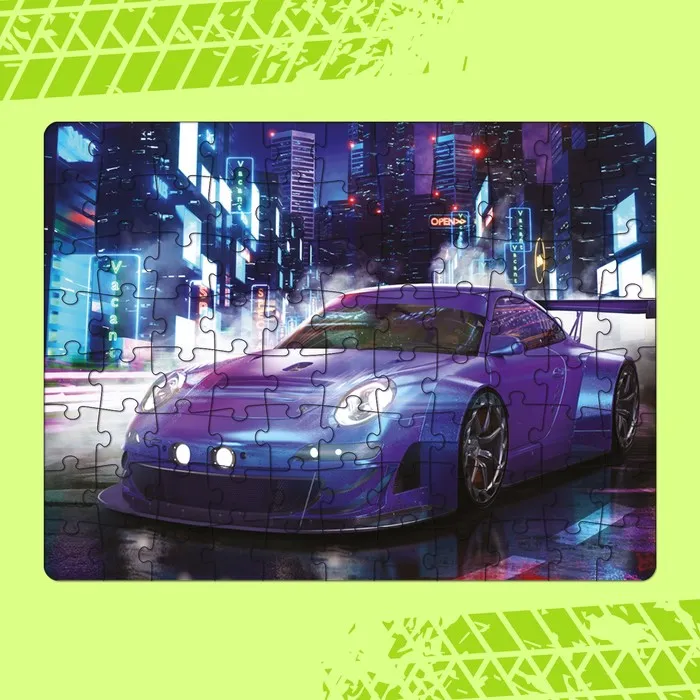 Cветящийся пазл «Ночной гонщик» — это занимательная развивающая игра в новом формате. Достаточно выключить свет в комнате, и вы увидите, как собранная картинка благодаря особой краске начнёт светиться в темноте.