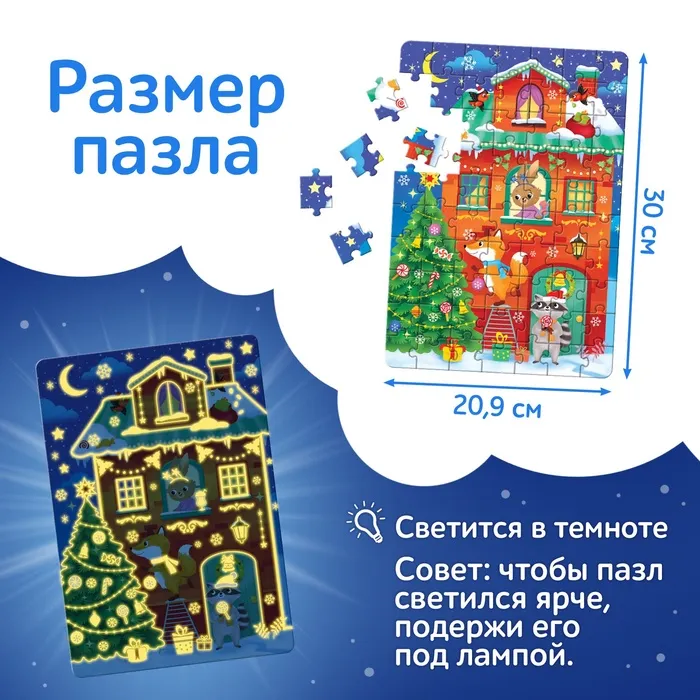 Пазлы светящиеся в металлической коробке «Волшебная ночь», 70 деталей — Характеристики