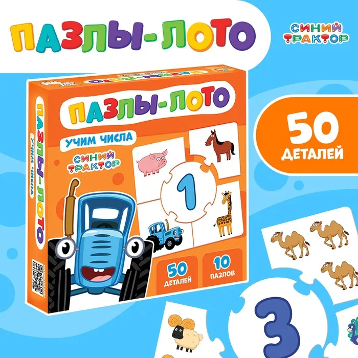 Пазлы - лото «Учим числа с Синим трактором», 10 пазлов, 50 элементов