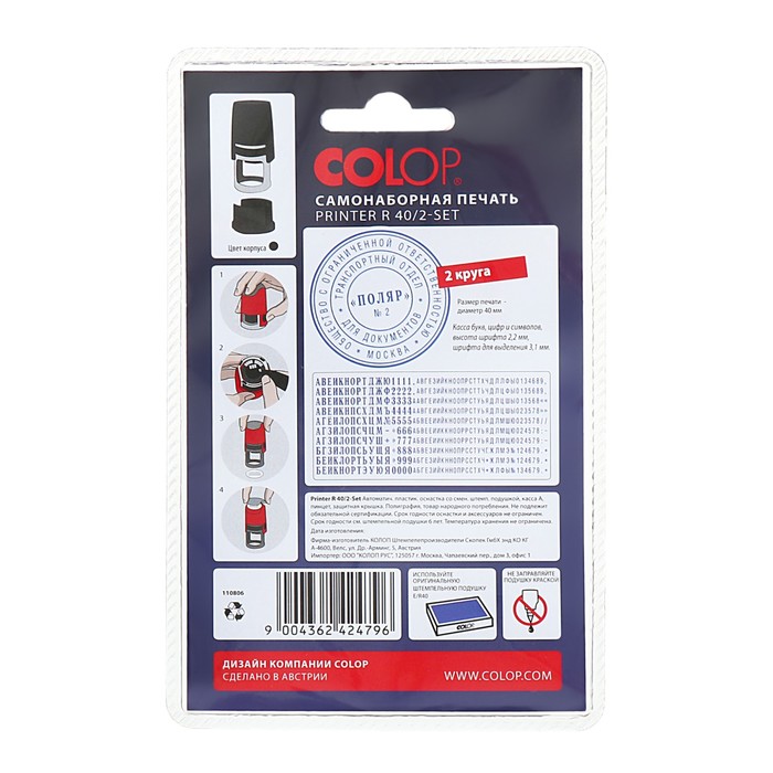Печать автоматическая самонаборная COLOP Printer R=40/2-SET, диаметр 40 мм, 2 круга, касса А, чёрная — Характеристики