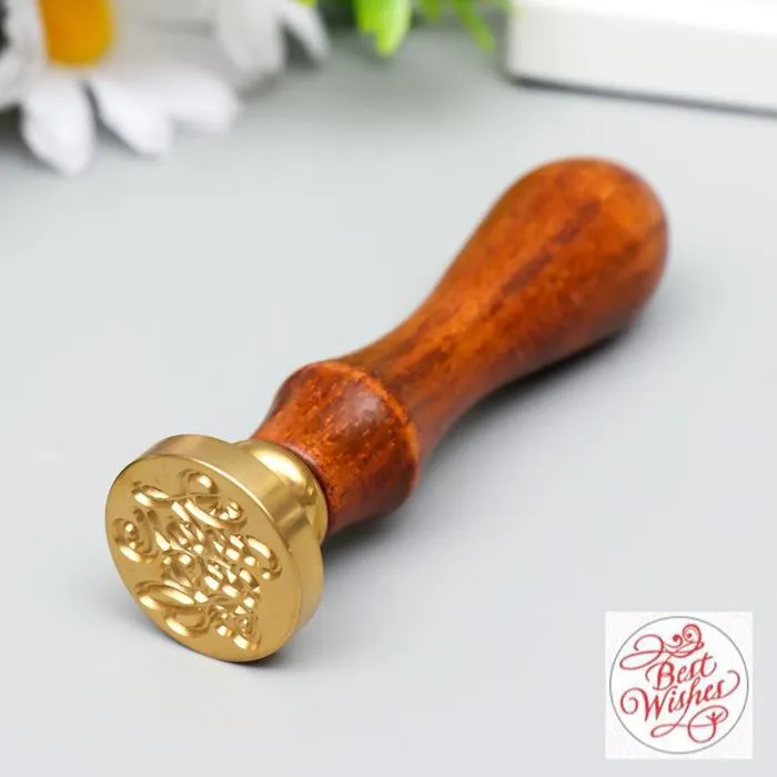 Печать для сургуча с деревянной ручкой Best wishes, 9×2.5×2.5 см