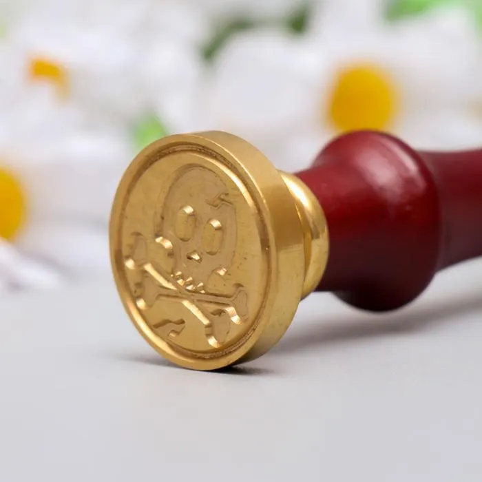 Печать для сургуча с деревянной ручкой "Череп и кости" 9х2,5х2,5 см