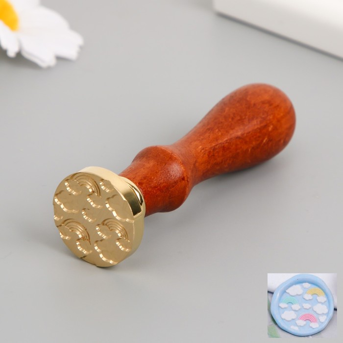 Печать для сургуча с деревянной ручкой «Радуга в облаках», 9×2.5×2.5 см