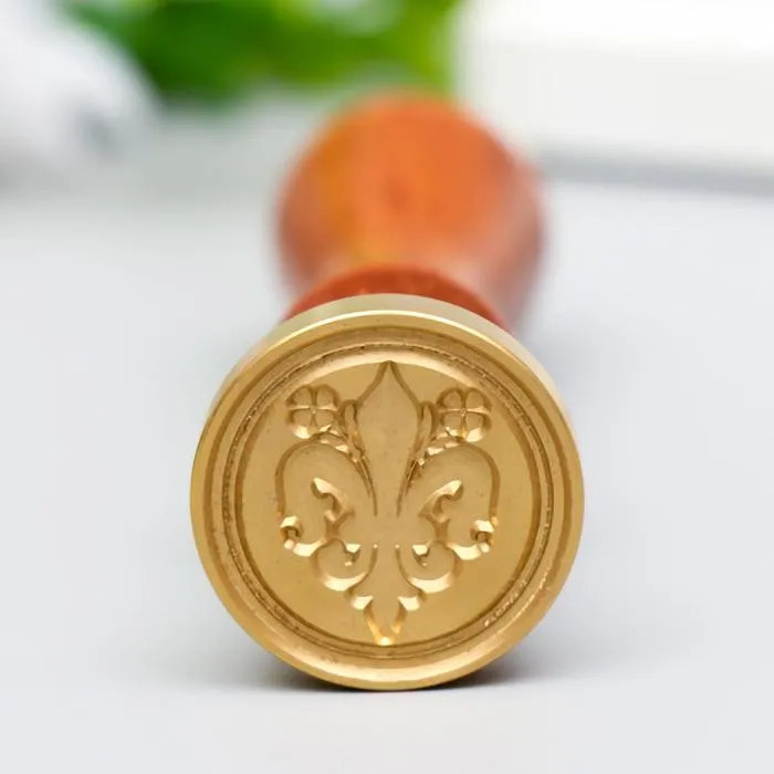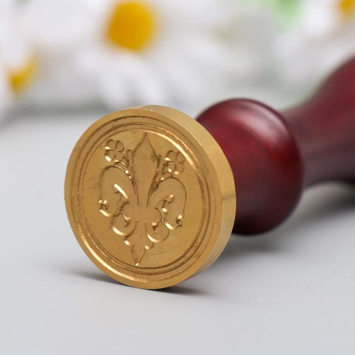 Печать для сургуча с деревянной ручкой «Геральдическая лилия с цветами», 9×2.5×2.5 см — Характеристики