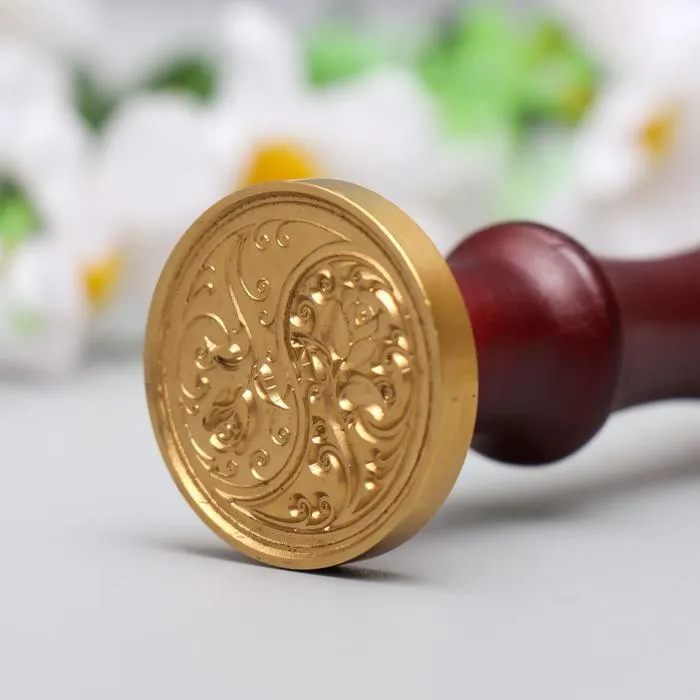Печать для сургуча с деревянной ручкой «Инь-ян - розы», 9×3×3 см