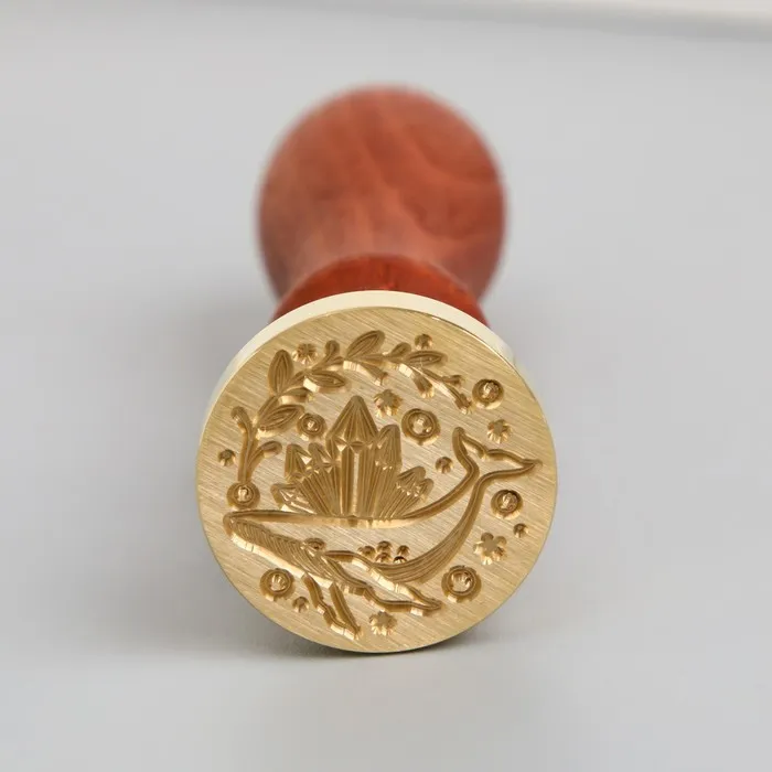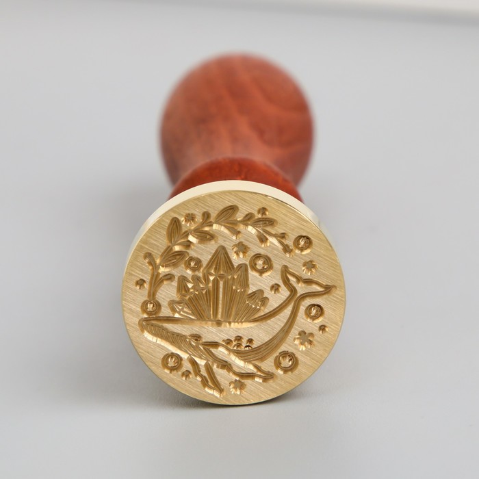 Печать для сургуча с деревянной ручкой «Кит и кристаллы», 9×2.5×2.5 см — Характеристики