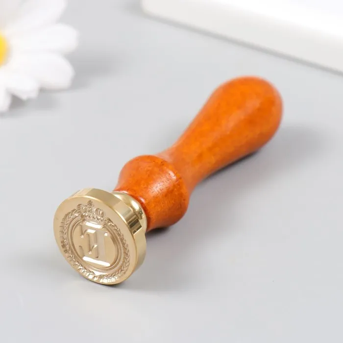 Печать для сургуча с деревянной ручкой «Корона с буквой E», 9×2.5×2.5 см — Характеристики