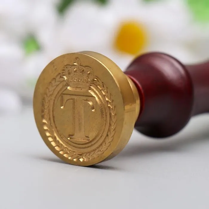 Печать для сургуча с деревянной ручкой «Корона с буквой T», 9×2.5×2.5 см — Характеристики