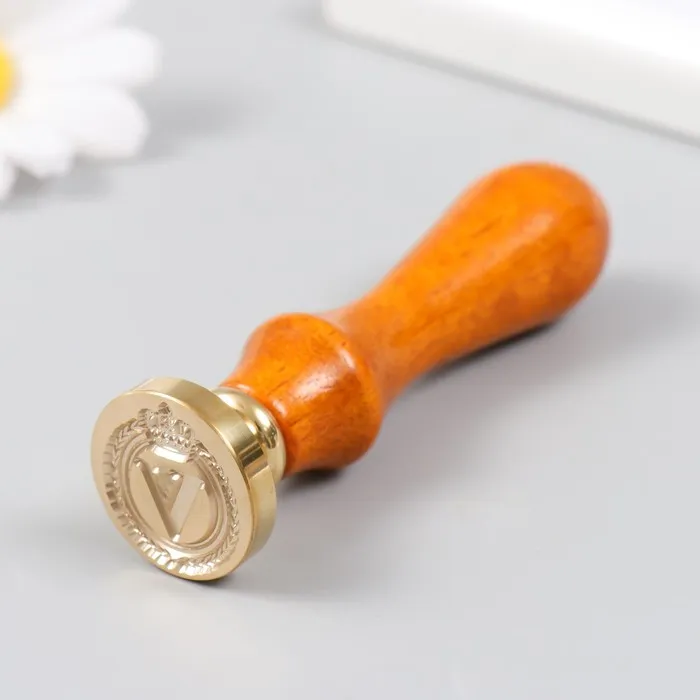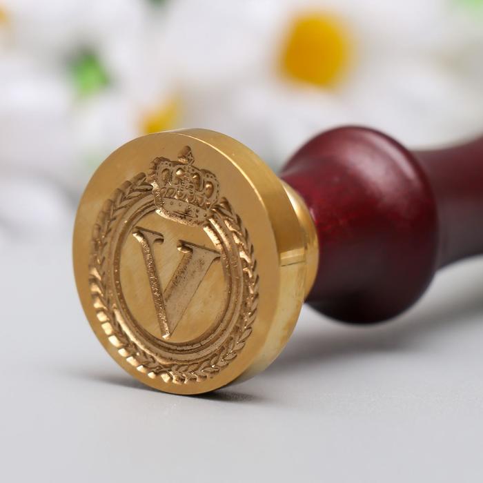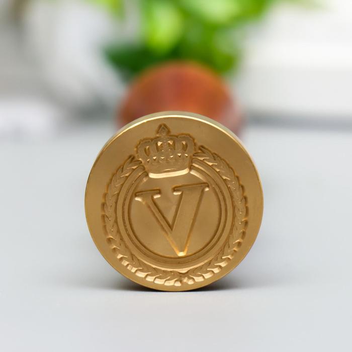 Печать для сургуча с деревянной ручкой «Корона с буквой V», 9×2.5×2.5 см — Характеристики