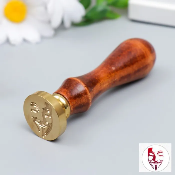 Печать для сургуча с деревянной ручкой «Маска Вендетта», 9×2.5×2.5 см — Характеристики