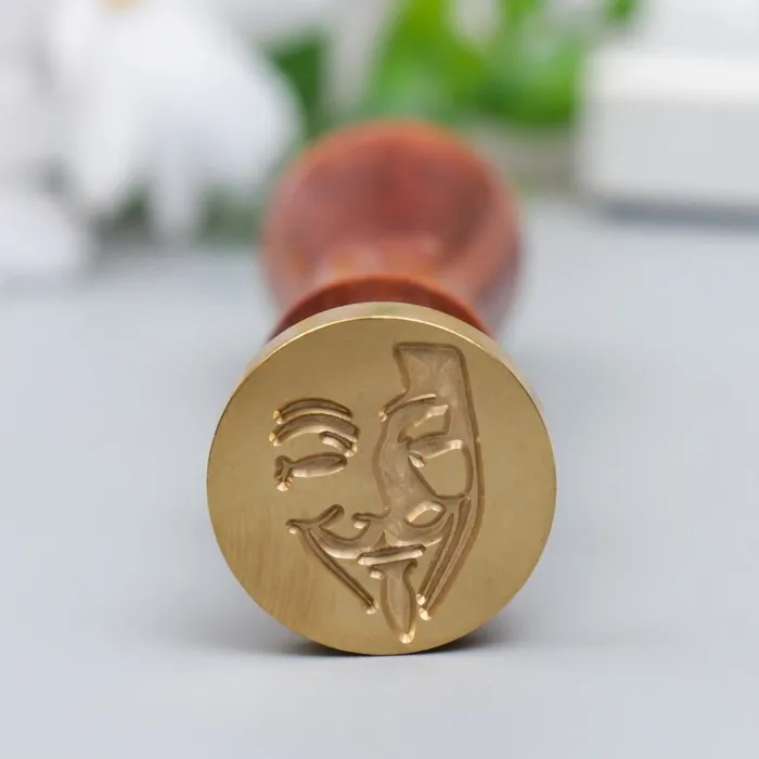 Печать для сургуча с деревянной ручкой «Маска Вендетта», 9×2.5×2.5 см