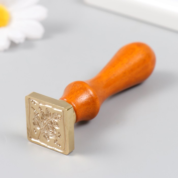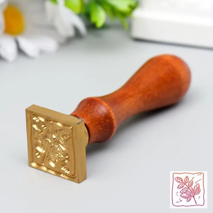 Печать для сургуча с деревянной ручкой «Веточка с листьями», 9×2.5×2.5 см