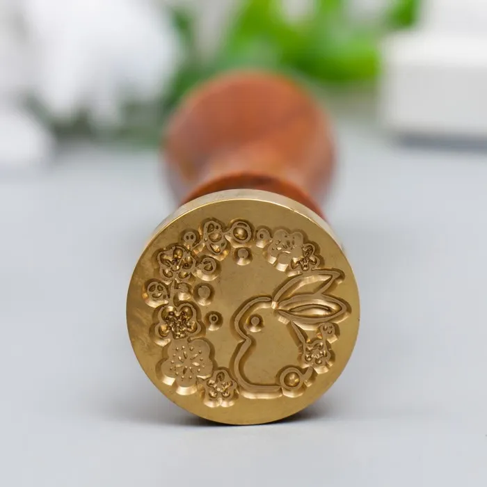Печать для сургуча с деревянной ручкой «Зайчик и цветочки», 9×2.5×2.5 см — Характеристики