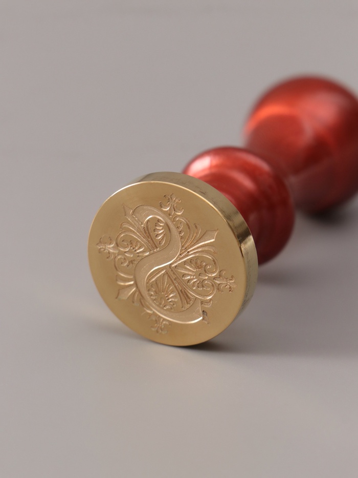 Добавьте нотку аристократизма вашей переписке с этой изысканной печатью, где плавные линии буквы S переплетаются с витиеватым вензелем. Её изящный дизайн напоминает о временах, когда каждое письмо было настоящим произведением искусства.