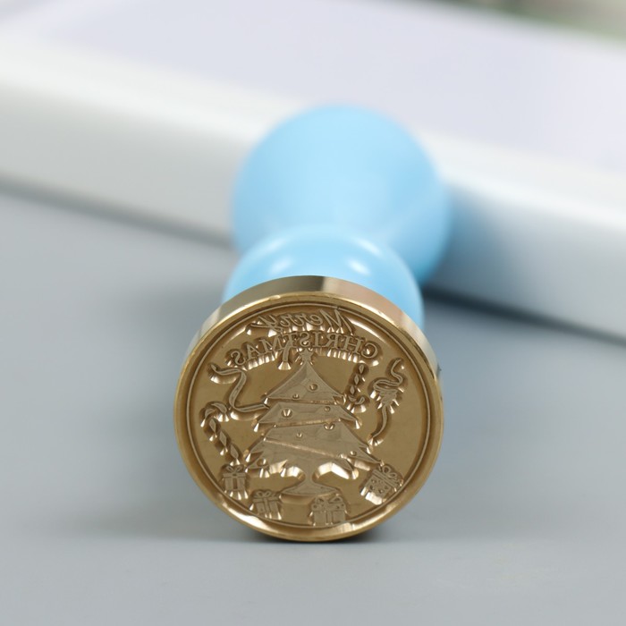 Печать для сургуча с пластиковой ручкой "Ёлочка с подарками" 2,5х2,5 см