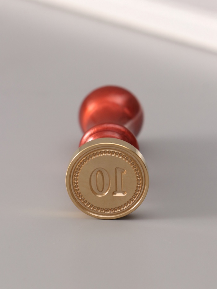 Печать для сургуча в классическом дизайне с цифрой 10 – незаменимый инструмент для создания элегантных подписей и декоративных оттисков. Идеальное средство для тех, кто ценит стиль и оригинальность. Отлично подходит для разнообразных творческих проектов, свадебных приглашений и деловой переписки.
