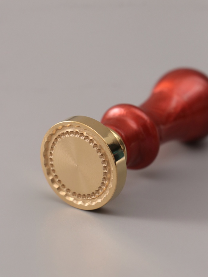 Печать для сургуча с пластиковой ручкой оформлена изысканным узорным орнаментом. Это идеальный инструмент для создания уникальных и запоминающихся оттисков. Форма круглой рамки с фигурным краем придаёт вашим письмам и документам особую значимость и шарм. Не упустите возможность добавить стильный акцент своим почтовым отправлениям или подаркам.
