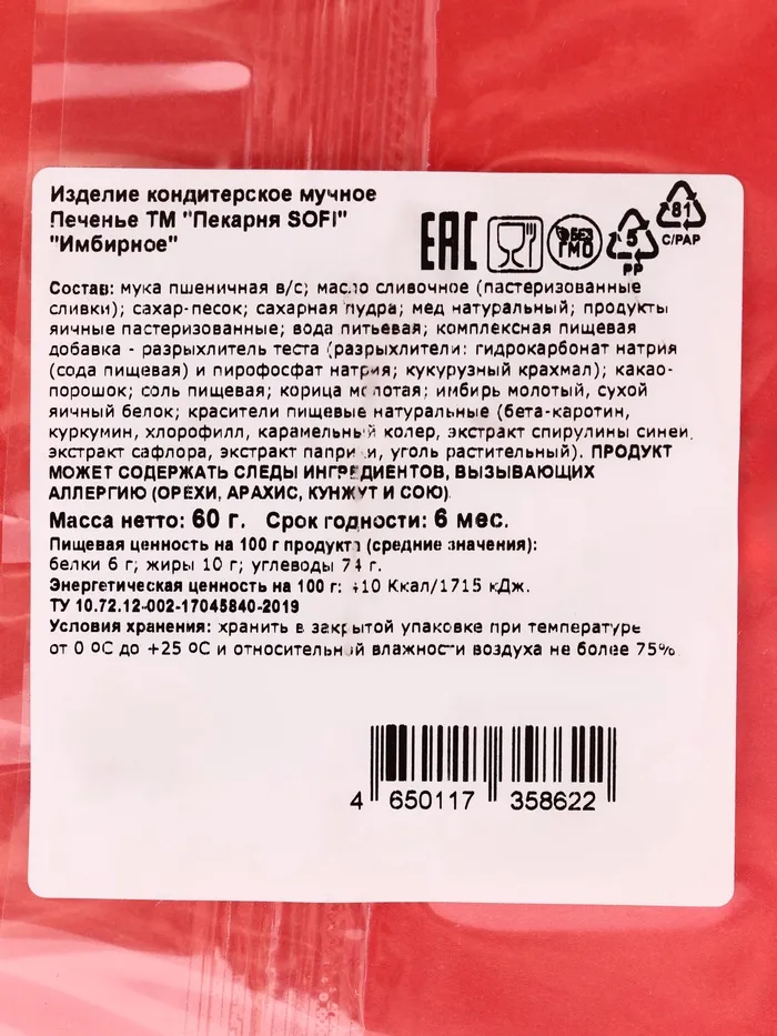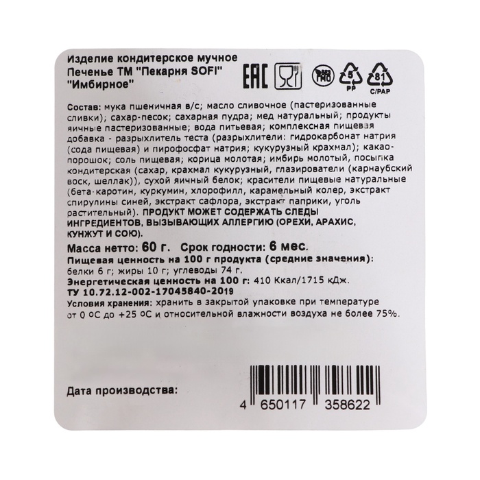 Печенье имбирное новогоднее «Рождественское», 60 г — Характеристики
