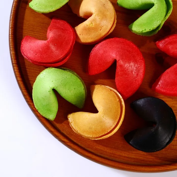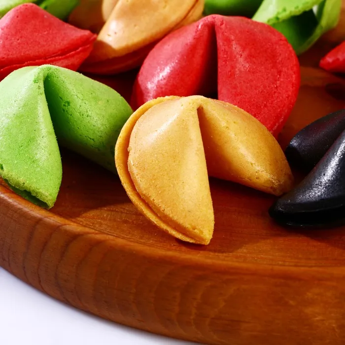 Разноцветное печенье с предсказанием удачи представляет собой небольшое хрустящее лакомство, в котором запечен листочек с предсказанием. Печенье может стать не только вкусным десертом, но и отличным вариантом подарка близкому человеку. Необычный цвет точно порадует любого получателя такого подарка. Он обязательно оценит неординарный подход, а оригинальное предсказание-сюрприз оставит после себя массу положительных эмоций! Печенье с предсказанием также может стать отличным дополнением к основному подарку на любой праздник или способом порадовать близкого и любимого человека просто так.