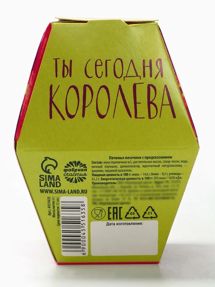 Печенье с предсказанием, 1 шт. «Сегодня твой день. С 8 Марта!» — Характеристики