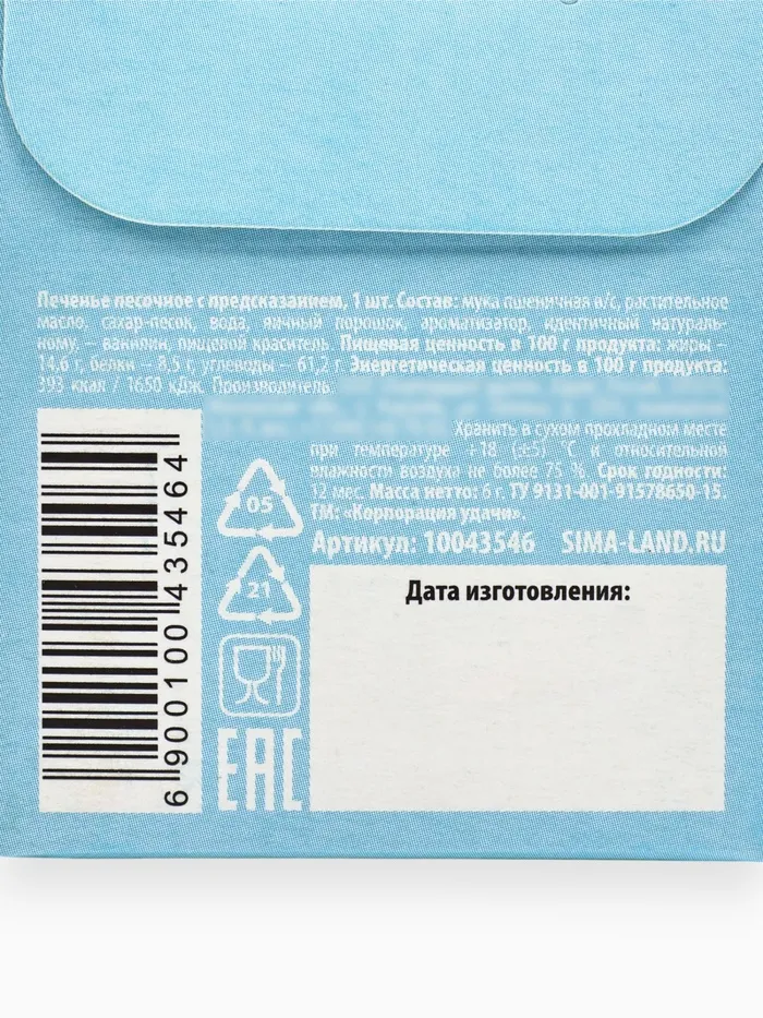 Печенье с предсказанием «8 марта», 1 шт. х 6 г. — Характеристики