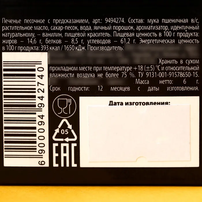 Печенье с предсказанием «Душнила» цветное, 1 шт х 6 г. — Характеристики
