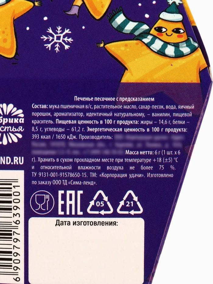 Печенье с предсказанием на новый год в коробке «Печенька исполнения желаний», 6 г. — Характеристики