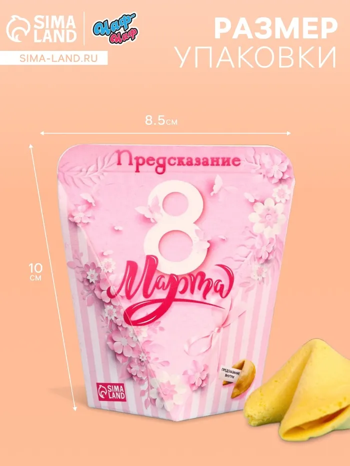 Печенье с предсказанием в оригинальной подарочной упаковке - станет отличным дополнением к основному подарку на 8 марта. Этим замечательным и необычным подарком можно выразить любовь, сказать о том, как вы дорожите любимым человеком. Также печенье с предсказанием - это хороший способ порадовать самого близкого и любимого человека просто так.