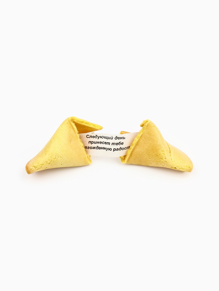Это печенье представляет собой небольшое хрустящее лакомство, в котором запечен листочек с предсказанием. Печенье может стать не только вкусным десертом, но и отличным вариантом подарка близкому человеку. Он обязательно оценит неординарный подход, а оригинальная надпись-сюрприз оставит после себя массу положительных эмоций!