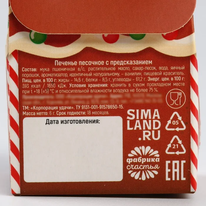 Печенье с предсказанием в коробке «Сладкого Нового года», 1 шт. — Характеристики