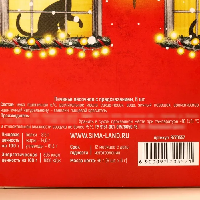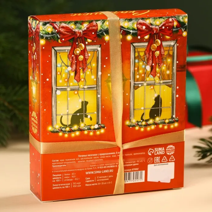 Печенье с предсказаниями на новый год в коробке «Исполнения желаний», 6 шт., — Характеристики