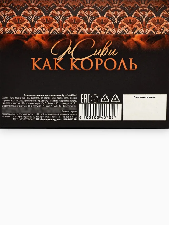 Печенье с предсказаниями «С днем настоящих мужчин», 18 г (3 шт. х 6 г). — Характеристики