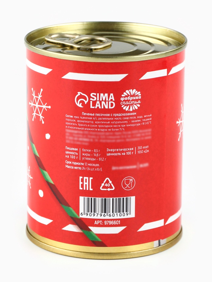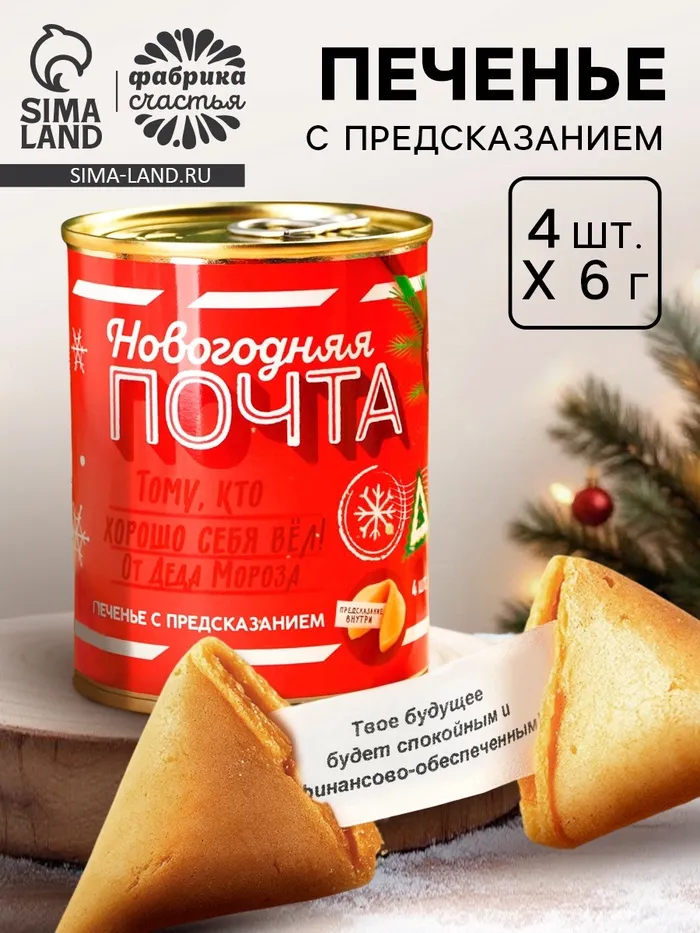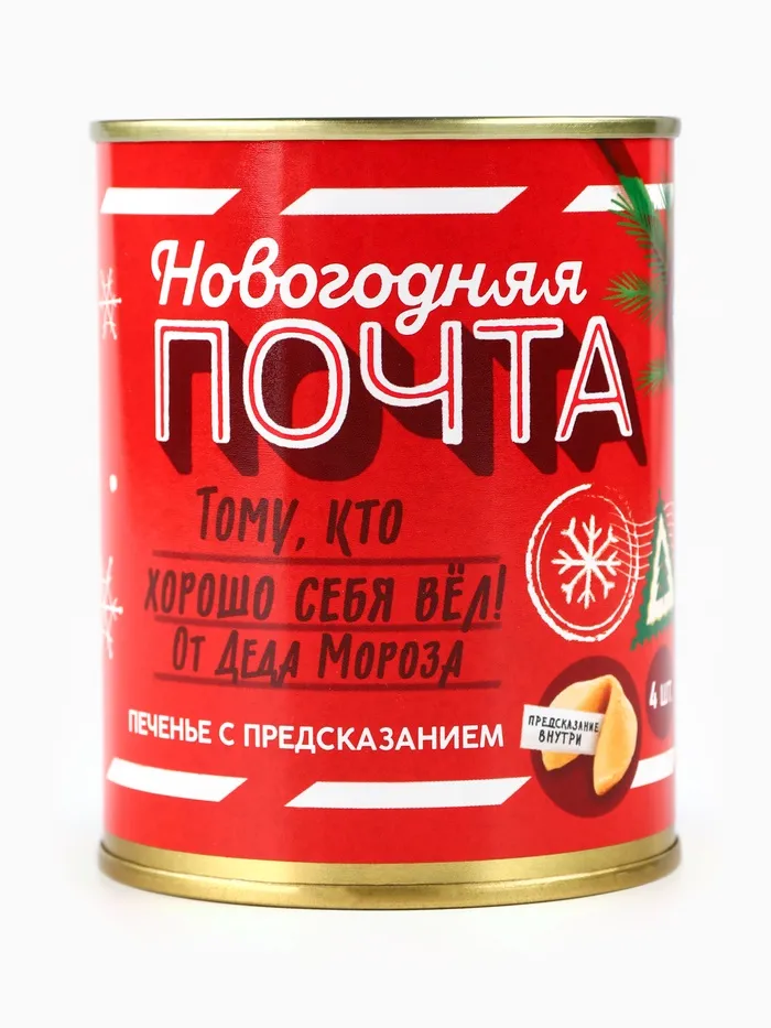 Печенье с предсказаниями в консервной банке «Новогодняя почта» — Характеристики