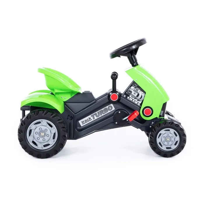 Каталка «Turbo-2» очень похожа на настоящий трактор! Добавляют реалистичность подвижные рычаги переключения передач и массивные рельефные колёса. Трактор легко управляется с помощью руля. Приведя в движение педальный механизм, малыш увезёт свой ценный груз в далёкие дали. Эту модель оценят настоящие любители автомобильной техники!