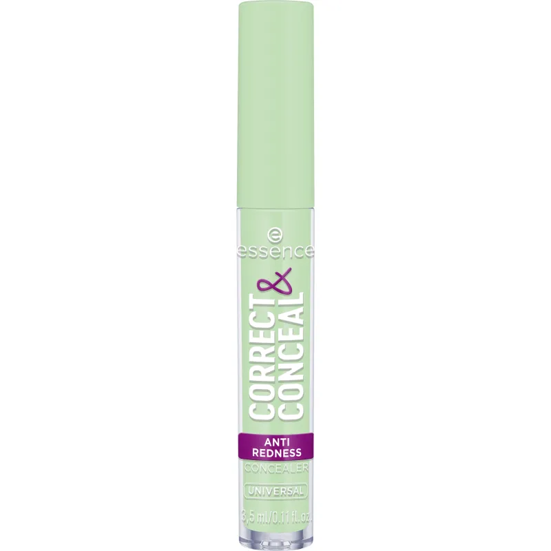 Корректор Essence Correct & Conceal 100 Universal с зеленоватым оттенком и алоэ вера помогает скрыть нежелательные красные пятна, не пересушивая кожу. Средняя или высокая степень покрытия позволяет добиться гладкого и естественного вида. Наносите корректор аппликатором и растушевывайте пальцем или кистью. После высыхания можно добавить обычный корректор. Некомедогенная формула не забивает поры, обеспечивая комфортное использование. Объем упаковки 3,5 мл.