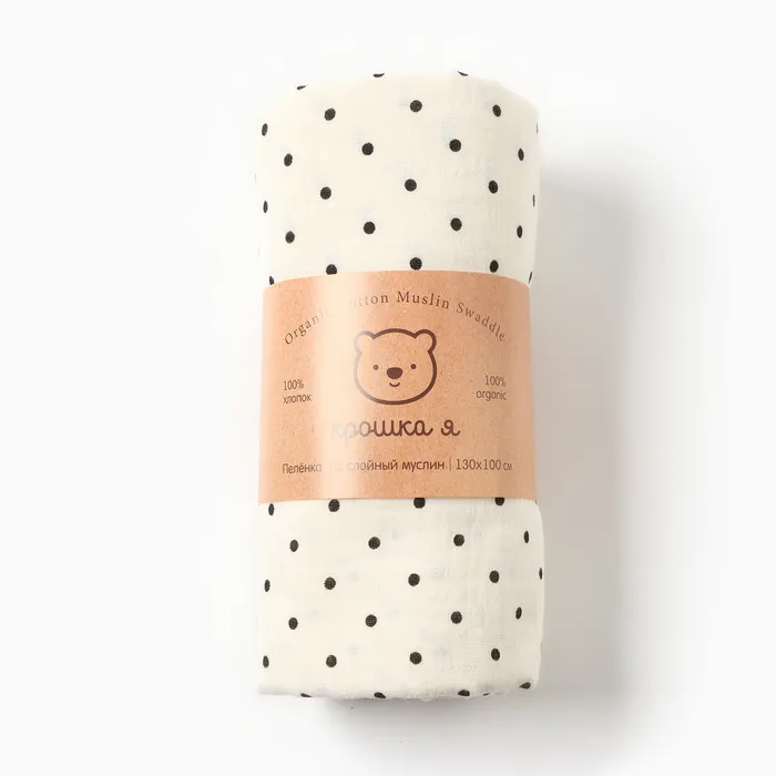 Пеленка двухслойная Крошка Я "Горошки", 130х100см, муслин,100 % хлопок — Характеристики