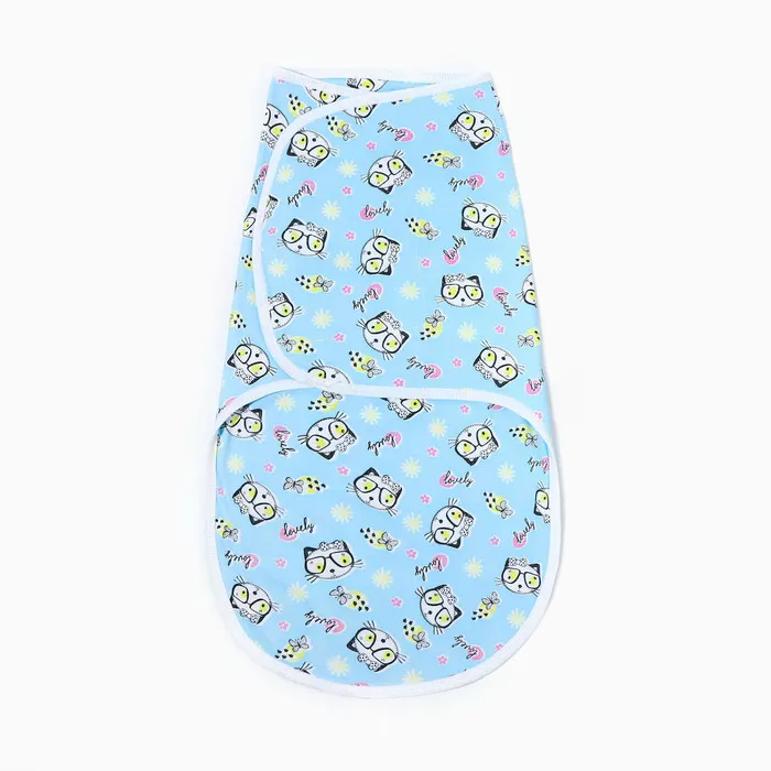 Пеленка-кокон на липучках, рост 50-62 см, кулирка, цвет голубой, принт микс — Характеристики
