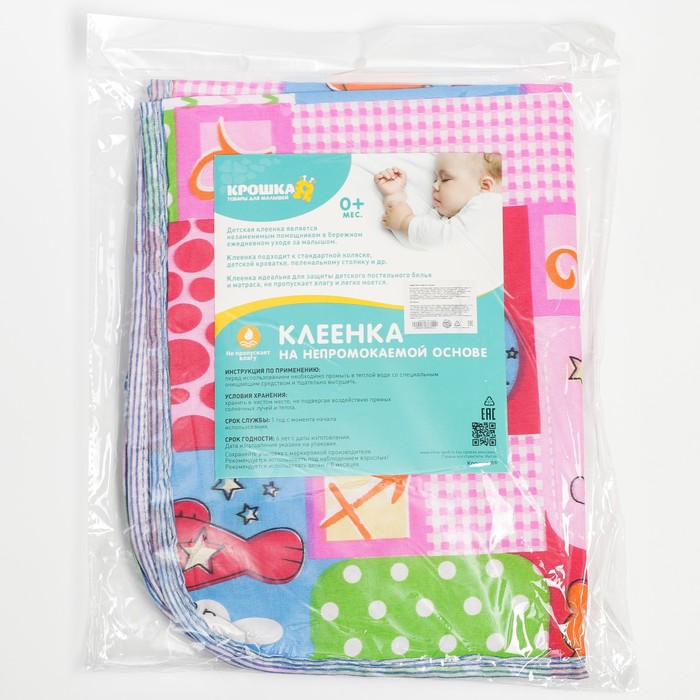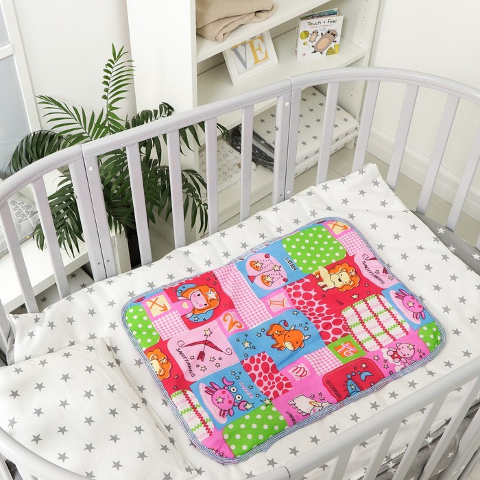Используйте подкладную клеёнку во время пеленания или сна, если на младенца не надет подгузник. Изделие размером подойдёт для детской кроватки или коляски. Применяйте его, чтобы защитить матрасик от намокания.