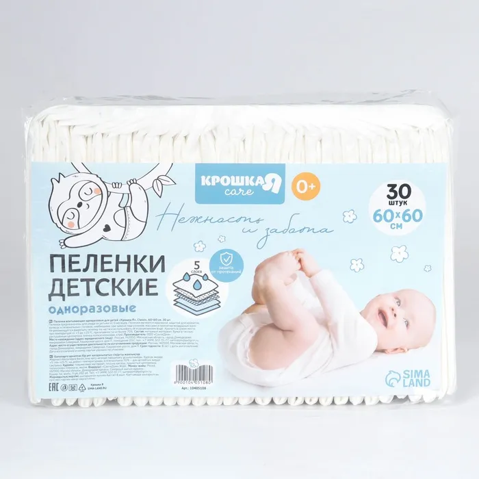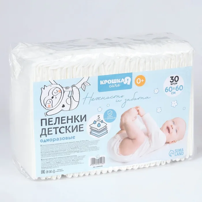 Пелёнки одноразовые впитывающие для детей Крошка Я, размер 60x60, 5 слоев, 30 шт. — Характеристики