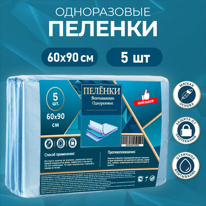 Пелёнки впитывающие одноразовые "Мой выбор", 60 х 90 см, 5 шт. — Характеристики