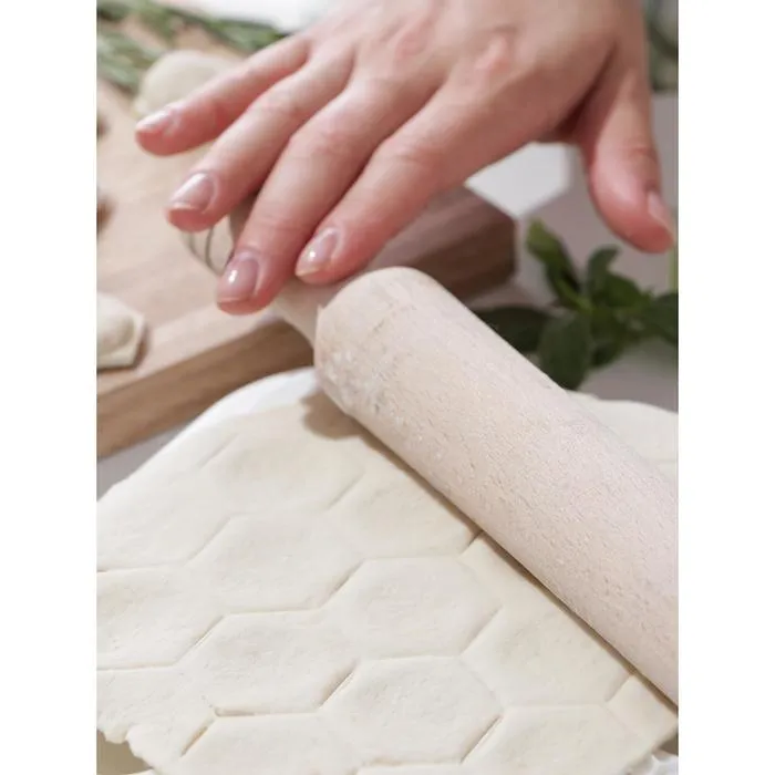 - Раскатываем два одинаковых пласта теста, чуть больше самой пельменницы. Внимательно следите, чтобы тесто было одинаковой толщины по всей площади.
