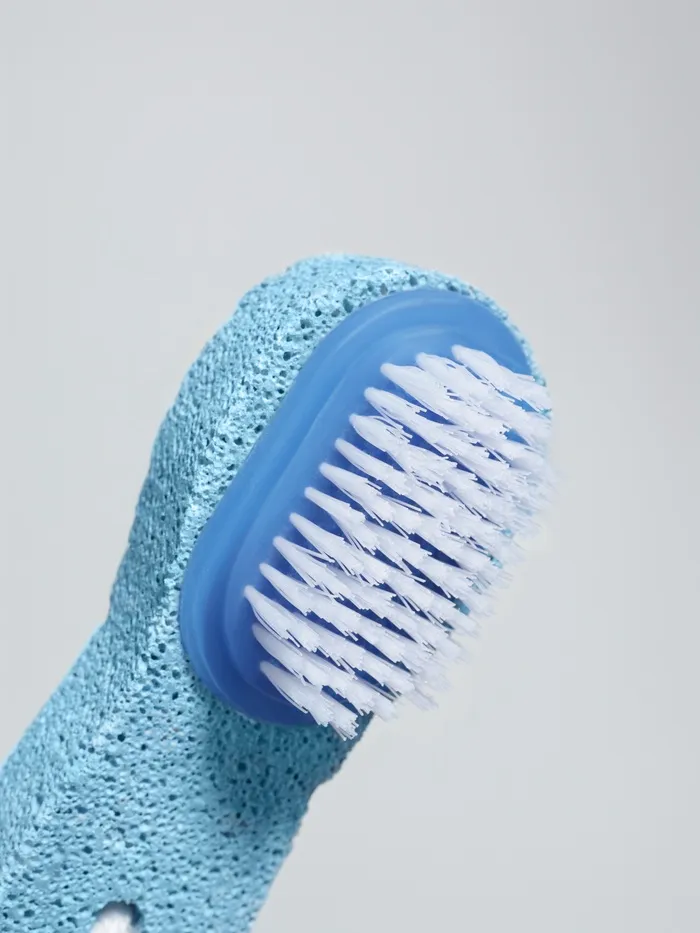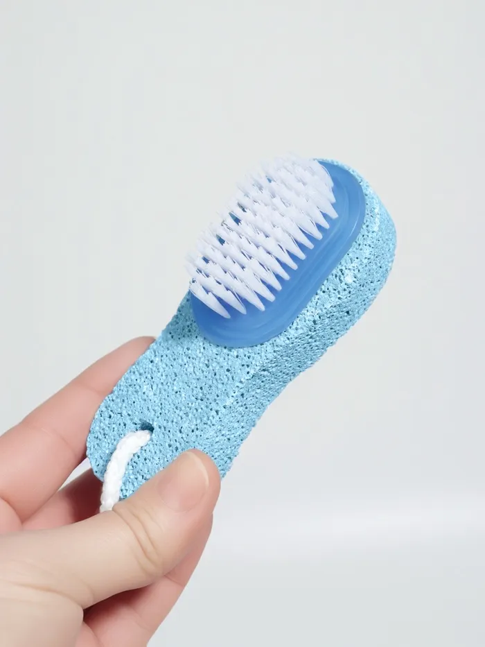 Этот универсальный аксессуар для ухода за ногами станет незаменимым помощником в вашей ежедневной рутине. Пемза с щёткой и удобной ручкой не только легко удаляет ороговевшую кожу, но и глубоко очищает ступни благодаря качественной щетине из нейлона. Она вспенивает мыло, удаляет загрязнения и подготавливает кожу к нанесению увлажняющих средств.