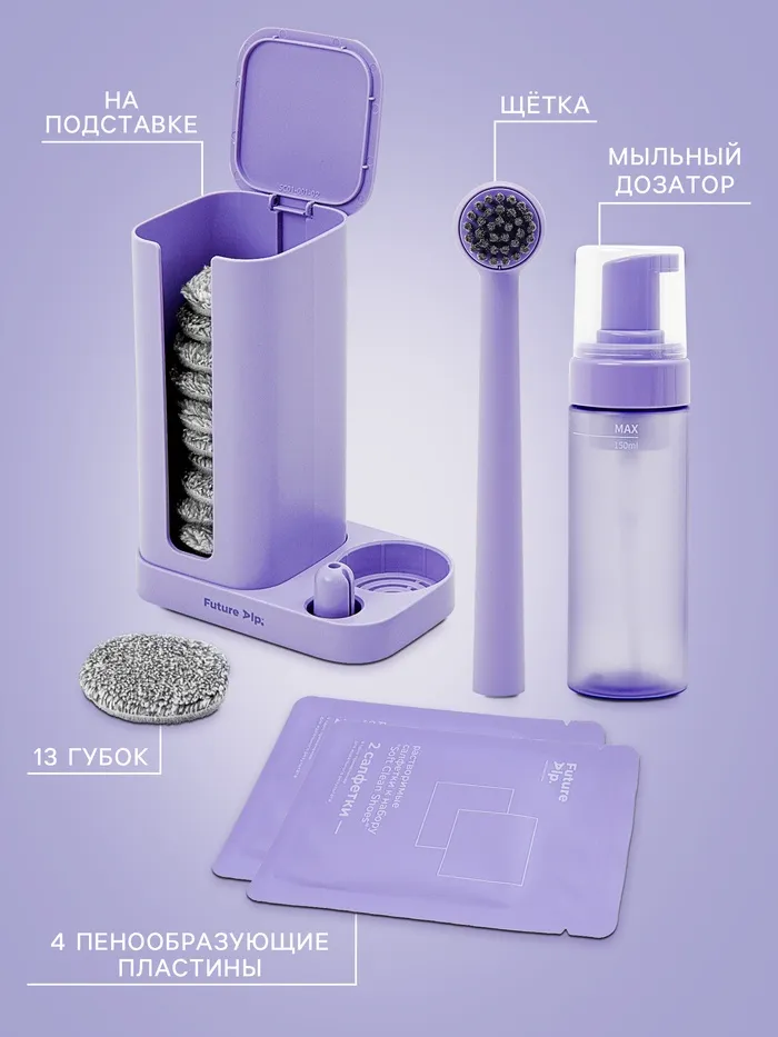 Пена для обуви со щёткой Future Alp Soft Clean Shoes, на подставке, 13 губок, 4 мыльные салфетки, пенный дозатор — Характеристики